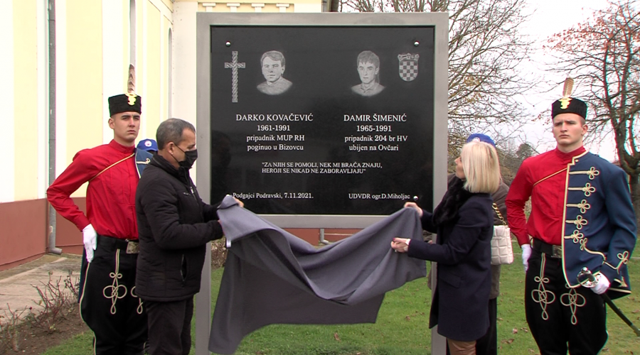 TUGA I SJEĆANJE NA RATNE HEROJE: U Podgajcima Podravskim podignuta spomen ploča Darku Kovačeviću i Damiru Šimeniću